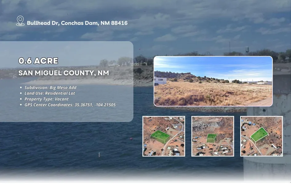 Discover your own slice of New Mexico at this 0.6 acre parcel on Bullhead Drive in Conchas Dam. Quiet, rural setting with wide-open skies, desert-mesa terrain, and plenty of room for a custom home, cabin, or RV setup. Just a short drive from Conchas Lake -- offering fishing, boating, swimming, camping, and recreation at the lake and nearby state park.