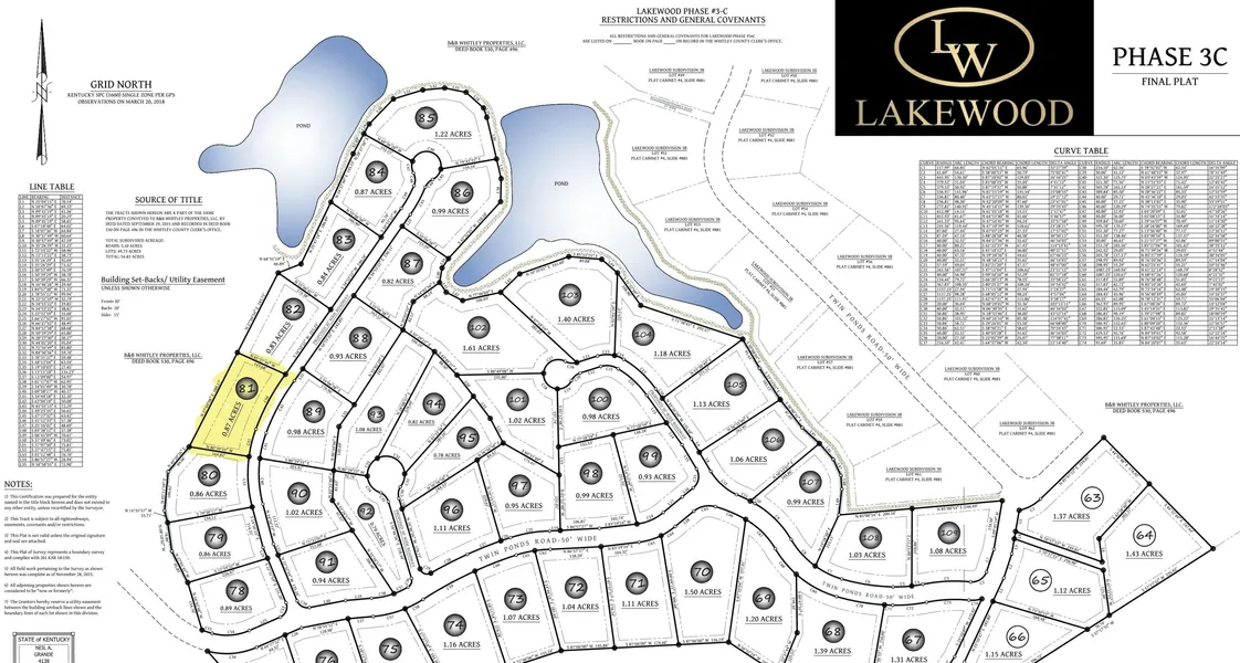 Lakewood, is boat-friendly, RV-friendly subdivision, with amenities for the whole family. We are about 5 miles from I75 at Exit 25, 7 miles from Grove Marina, 8 miles from Cumberland Falls State Park and 10 miles from Holly Bay Marina. This Lot has been Partially cleared and is located in the heart of Lakewood, with access to all of Lakewood's amenities. Beautiful lot!