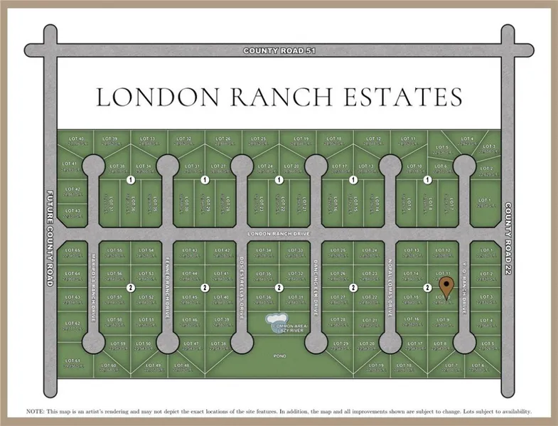 Introducing London's newest gated community, London Ranch Estates, offering peaceful views of untouched farmland. Enjoy a little over half an acre home site within this community acting as a blank canvas for your dream estate. Located in the heart of London, London Ranch Estates is a gated community designed to maximize privacy and peace, while cultivating an inviting and spacious neighborhood. This intimate community features 108 homesites with each lot being a minimum of half an acre for added privacy. Community amenities to include a luxury ranch style gated entrance, community swimming pool and lazy river, pond and park. Choose your own builder and architect for your dream home on your home site and build when you're ready. Prime serene location and just minutes from the highway where you can find restaurants, shopping, and entertainment. Secure your luxury ranch style home site toda...