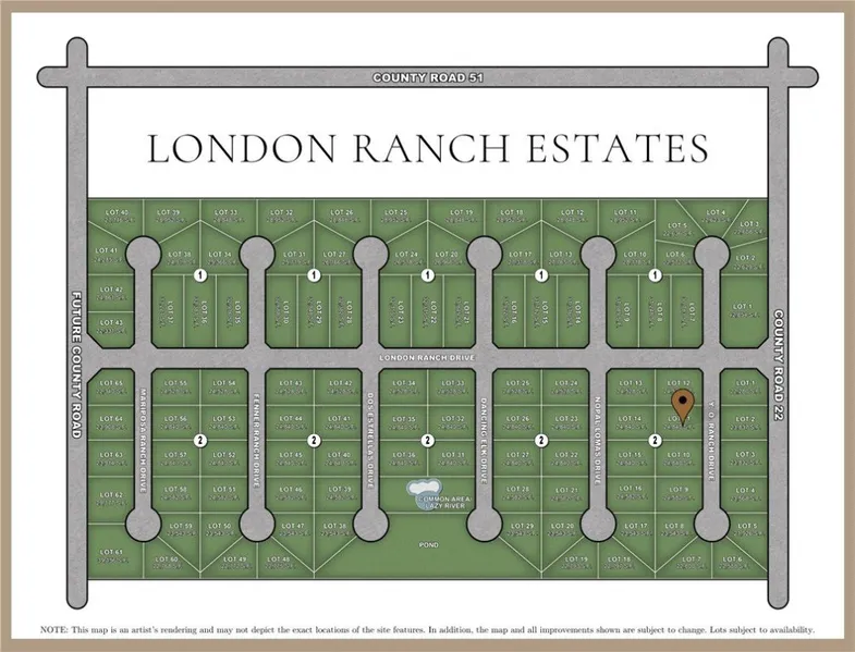 Introducing London's newest gated community, London Ranch Estates, offering peaceful views of untouched farmland. Enjoy a little over half an acre home site within this community acting as a blank canvas for your dream estate. Located in the heart of London, London Ranch Estates is a gated community designed to maximize privacy and peace, while cultivating an inviting and spacious neighborhood. This intimate community features 108 homesites with each lot being a minimum of half an acre for added privacy. Community amenities to include a luxury ranch style gated entrance, community swimming pool and lazy river, pond and park. Choose your own builder and architect for your dream home on your home site and build when you're ready. Prime serene location and just minutes from the highway where you can find restaurants, shopping, and entertainment. Secure your luxury ranch style home site toda...
