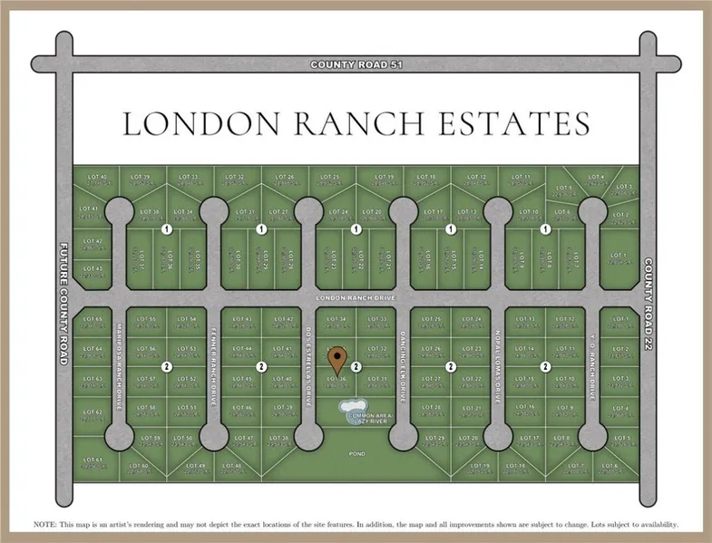 Introducing London's newest gated community, London Ranch Estates, offering peaceful views of untouched farmland. Enjoy a little over half an acre home site within this community acting as a blank canvas for your dream estate. Located in the heart of London, London Ranch Estates is a gated community designed to maximize privacy and peace, while cultivating an inviting and spacious neighborhood. This intimate community features 108 homesites with each lot being a minimum of half an acre for added privacy. Community amenities to include a luxury ranch style gated entrance, community swimming pool and lazy river, pond and park. Choose your own builder and architect for your dream home on your home site and build when you're ready. Prime serene location and just minutes from the highway where you can find restaurants, shopping, and entertainment. Secure your luxury ranch style home site toda...