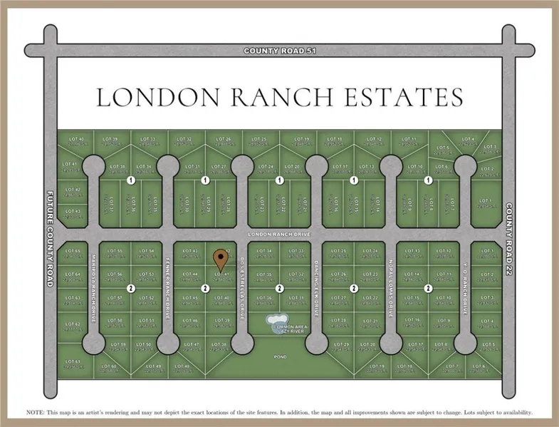 Introducing London's newest gated community, London Ranch Estates, offering peaceful views of untouched farmland. Enjoy a little over half an acre home site within this community acting as a blank canvas for your dream estate. Located in the heart of London, London Ranch Estates is a gated community designed to maximize privacy and peace, while cultivating an inviting and spacious neighborhood. This intimate community features 108 homesites with each lot being a minimum of half an acre for added privacy. Community amenities to include a luxury ranch style gated entrance, community swimming pool and lazy river, pond and park. Choose your own builder and architect for your dream home on your home site and build when you're ready. Prime serene location and just minutes from the highway where you can find restaurants, shopping, and entertainment. Secure your luxury ranch style home site toda...