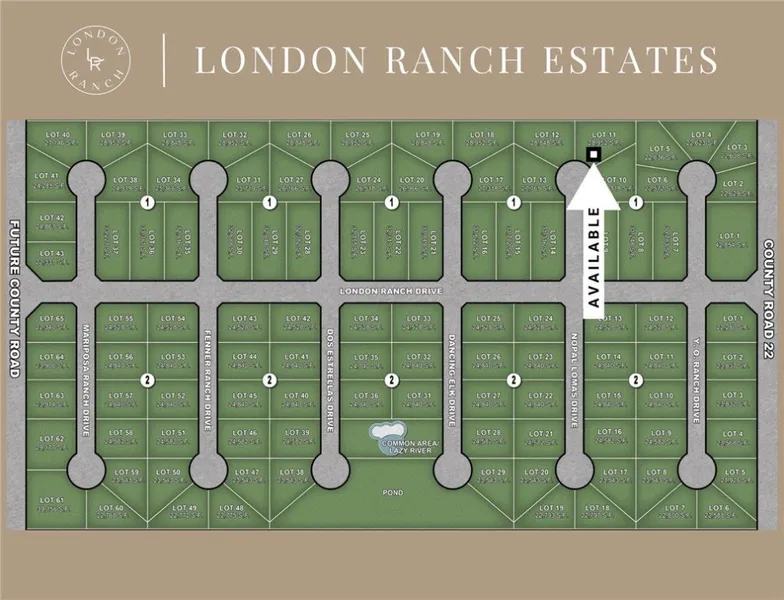 CUL DE SAC - over 1/2 an acre lot. Introducing London Ranch Estates, London's newest gated community, where serene views of untouched farmland provide the perfect backdrop for your dream estate. Nestled in the heart of London, this brand new neighborhood offers expansive homesites of at least half an acre, creating a unique opportunity to design and build a custom home that fits your vision. Designed for privacy, tranquility, and elegance, London Ranch Estates features 108 spacious homesites, each thoughtfully planned to offer a balance of seclusion and community. Residents will enjoy premium amenities, including: a luxury ranch-style gated entrance for enhanced security and sophistication, a resort-style community pool and lazy river for ultimate relaxation, a scenic pond perfect for outdoor enjoyment. With no restrictions on builders or timelines, you have the flexibility to select your preferred builder and architect and start construction when you're ready. Ideally located just minutes from the highway, this prime location provides easy access to top-tier dining, shopping, and entertainment. Secure your luxury homesite today and experience the best of upscale country living! *Map is an artist's rendering and may not reflect exact site features.