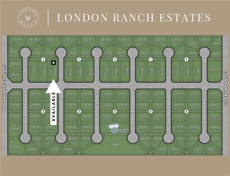 CORNER LOT - 3/4 of an acre. Introducing London Ranch Estates, London's newest gated community, where serene views of untouched farmland provide the perfect backdrop for your dream estate. Nestled in the heart of London, this brand new neighborhood offers expansive homesites of at least half an acre, creating a unique opportunity to design and build a custom home that fits your vision. Designed for privacy, tranquility, and elegance, London Ranch Estates features 108 spacious homesites, each thoughtfully planned to offer a balance of seclusion and community. Residents will enjoy premium amenities, including: a luxury ranch-style gated entrance for enhanced security and sophistication, a resort-style community pool and lazy river for ultimate relaxation, a scenic pond perfect for outdoor enjoyment. With no restrictions on builders or timelines, you have the flexibility to select your preferred builder and architect and start construction when you're ready. Ideally located just minutes from the highway, this prime location provides easy access to top-tier dining, shopping, and entertainment. Secure your luxury homesite today and experience the best of upscale country living! *Map is an artist's rendering and may not reflect exact site features.