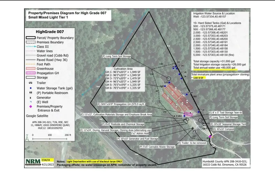 Turnkey Opportunity! Discover an exceptional opportunity to own a fully permitted cannabis farm. Expertly designed for efficiency and profitability this property is nestled in a serene setting, and boasts just under 10,000 square ft. of outdoor cultivation space across six greenhouses. The property features a newer well, drilled in 2017 that produces 12 GMP delivering approx. 80,000 gallons annually. Water is stored in nine poly tanks totaling 16,000 gallons for irrigation. Also comes with 2 sheds for drying and processing. Don't miss your chance to step into a fully operational cannabis business with everything in place to succeed. Contact us today to schedule a viewing!