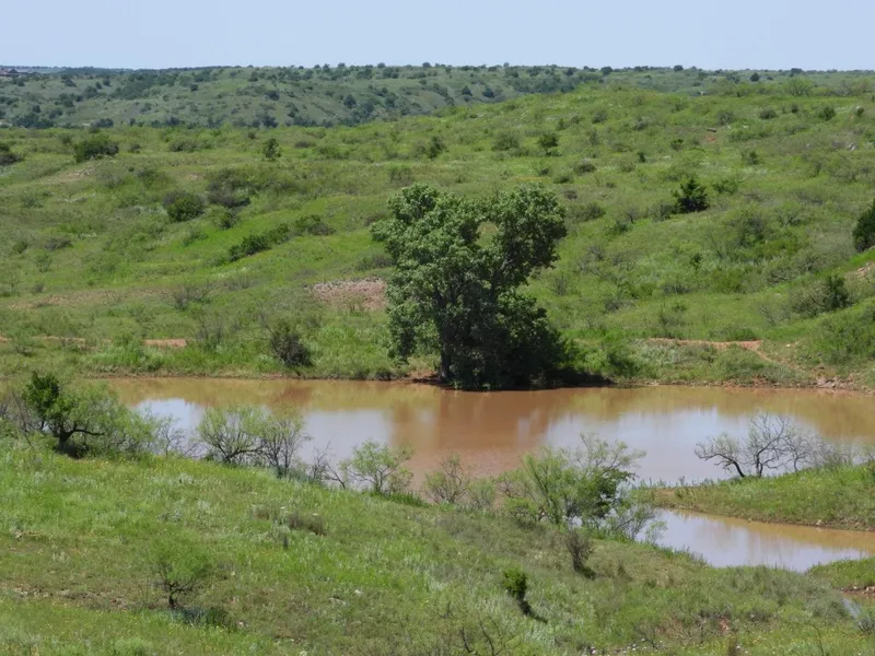 This 480+/- acres in Mangum, Greer County, Oklahoma features county road frontage on the north and south boundaries of the property. There are nice elevation changes and cover for wildlife. There is a 25' x 14' covered shed for cattle and a 15' x 14' feed room connected to the shed. The 50' x 70' working pen has a loading alley and there is a county supplied water line providing water at the pens. There are two spring fed creeks, approximately 18-24'' wide and 6-12'' deep, and a large tank that provide water to the pastures.