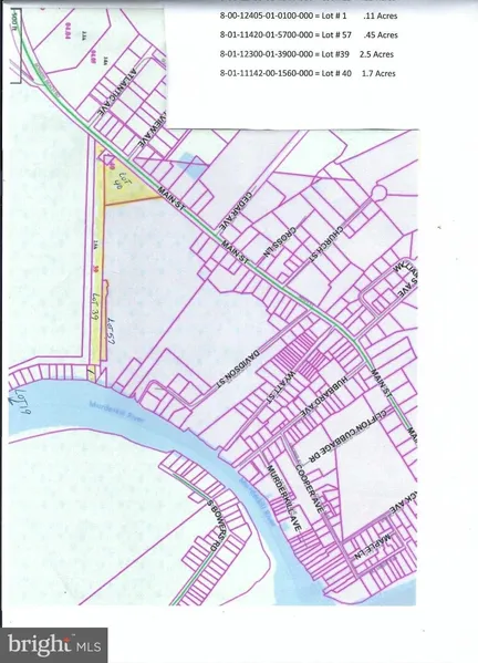 Lot #39 And Lot 40 have Bowers Beach Road Frontage. There is a small parcel with a navigational tower located on their boundary line that is not included with ownership. Lot #39 is 2.5 Acres that runs to Lot #1. Lot #1 Has 50 ft. water frontage on the River. Lot # 57 adds width to Lot #39. lot # 19 does not share a boundary line with these 4 parcels. It is along the waterfront with a 50-foot frontage. Buyer is responsible for any Permits, Surveys and Tests. The total Acreage is 4.88 Acres.