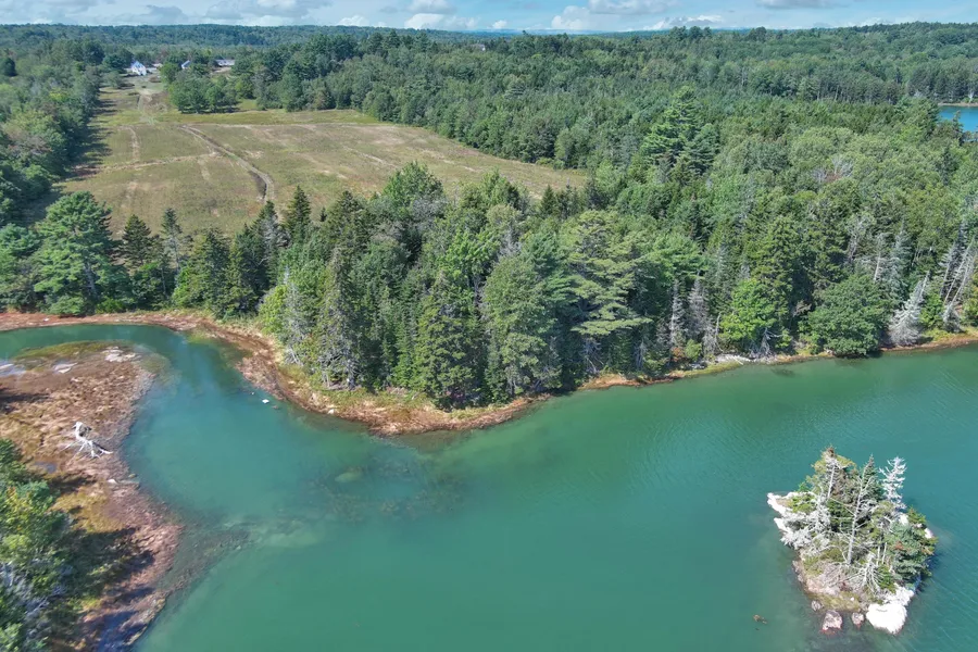 A SOUTHERLY VIEW AND OVER 400 FEET OF SALTWATER FRONTAGE are yours with a private and peaceful setting. Composed of approximately 14 acres of rolling fields backed by a forested screen this property awaits your new home. Come, view and enjoy.