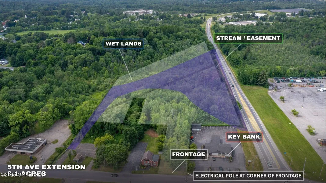 Unique opportunity in Gloversville retail area near intersection of Rt 30A and 5th Ave. Most of property is wetlands. 8.1 acres zoned commercial. Water and sewer available at street. This parcel price will be reduced by 20% if purchased in tandem with 189 5th Ave Gloversville.