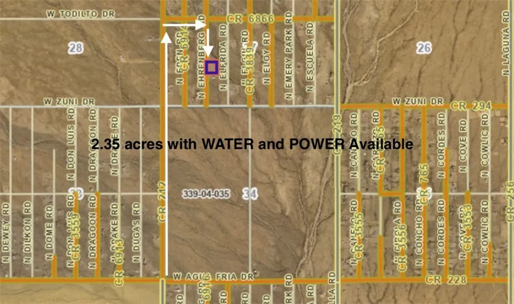 2.35 acres on county maintained roads with WATER AND POWER available. This is a great opportunity to own a lot with amazing views of the surrounding mountains.