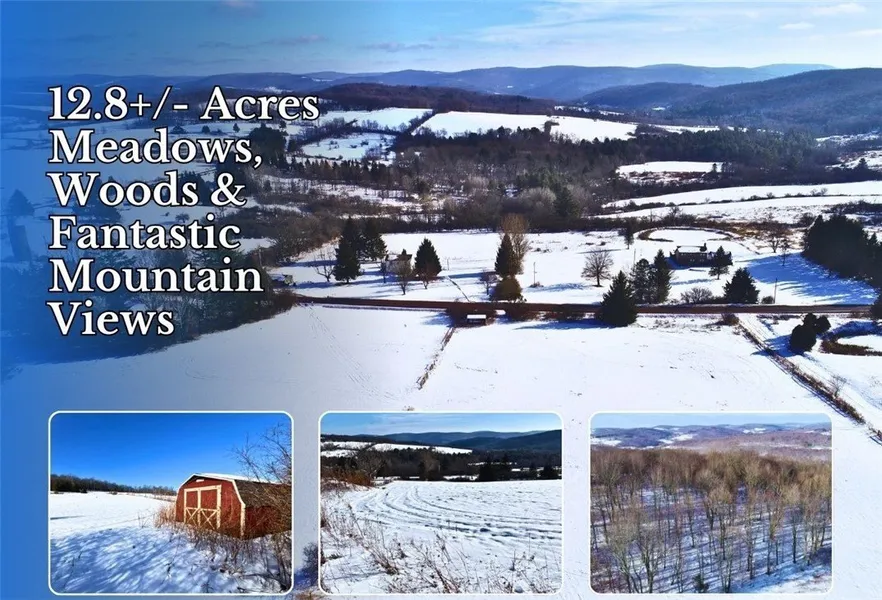 Set your sights on a rare Catskills canvas where sky, meadow, and mountain converge. This offering includes two adjoining, surveyed parcels totaling 12.8+/- acres, a harmonious blend of open meadows and whispering woods that gently unfold toward big, breathtaking mountain views-the kind that stop you mid-stride and remind you why people fall in love with this region. With a town-maintained road and culvert already in place with existing driveway entrances, the groundwork has been thoughtfully laid, making it easy to envision your next chapter-whether that's a secluded country retreat, a year-round residence, or a legacy property to be enjoyed for generations. The land's gentle slope offers both beauty and buildability, while a small shed provides immediate utility as you plan and explore. Beyond the property lines, the town of Hamden delivers the classic Catskills lifestyle so many seek:...