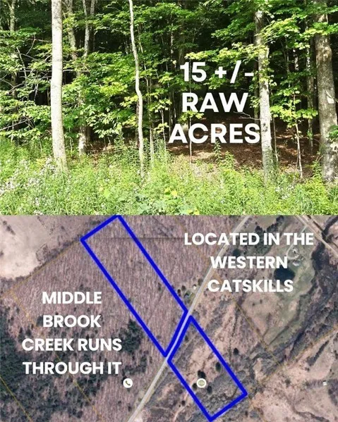 Wooded Acreage with Stream Frontage in the Heart of the Western Catskills Discover approximately 15+/- acres of scenic Catskill countryside perfectly positioned between the vibrant college town of Oneonta and the charming village of Stamford, NY. This unique offering is accessible from both sides of a town-maintained road, providing multiple options for use and development. The west side features a mix of raw wooded land and a gently sloping 10-22 degree grade, ideal for creating a private hillside retreat, cabin, or recreational getaway. On the east side, you'll find areas of level, accessible ground with the serene Middle Brook stream running through-a peaceful setting for camping, or simply enjoying nature by the water. Conveniently located near beloved local attractions such as Thompson's Sugar Shack and Harpersfield Cheese, the property offers the perfect balance of privacy and prox...