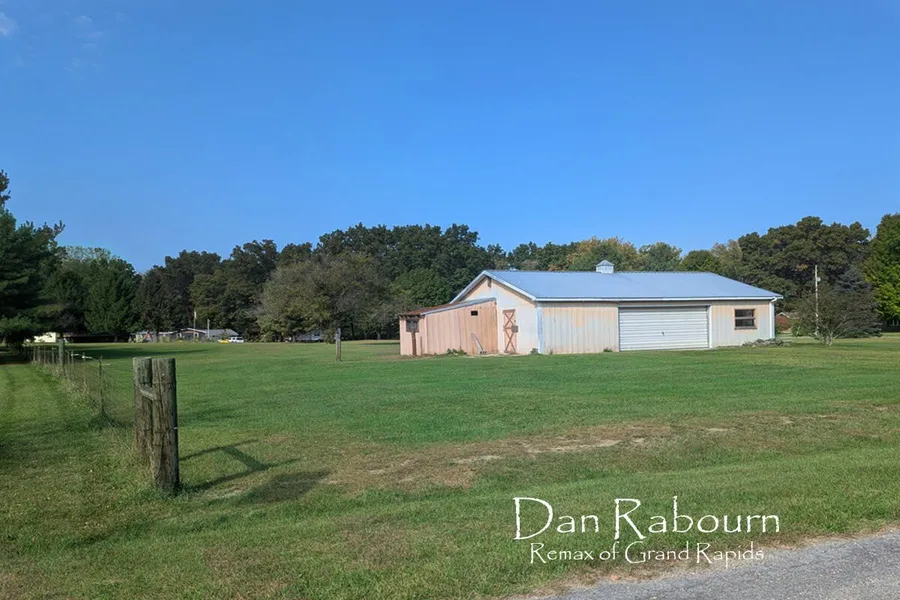 PRIME 2.2 acre lot with a large 1,200 sq ft pole barn for storage, workshop, or extra space for hobbies and toys. The house across the street on the Thornapple River is also listed both as stand alone and also listed as package with this lot. Both listed as 3261 River Ln.