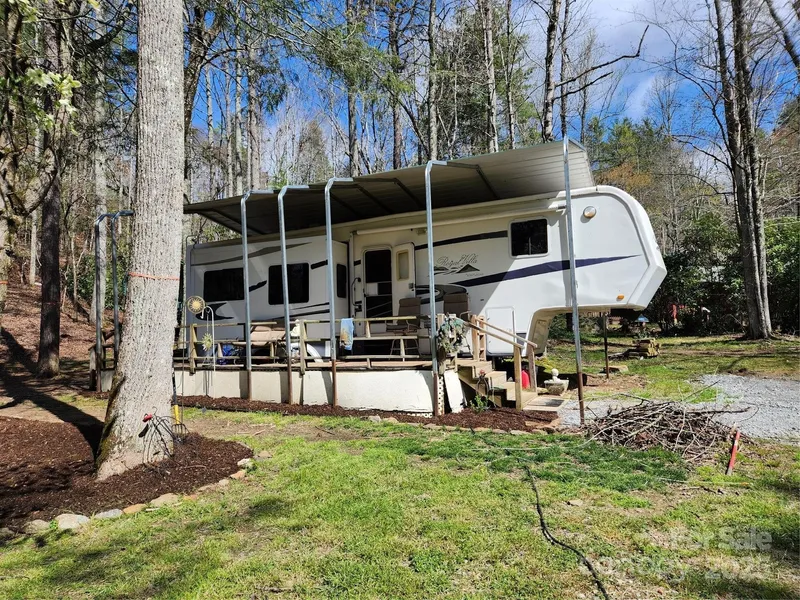 5th Wheel travel trailer on lot with well and septic in place. Septic system has a 2 BR permit. S Jarvis is a private road, there is no maintenance agreement. Travel trailer is hooked up and ready to go. Three slide outs give plenty of room to relax. Sold furnished with king sized bed, 2 full size couches and kitchen appliances. There are two out buildings on the property for ample storage. Sit on the covered front deck listen to the stream across the way.