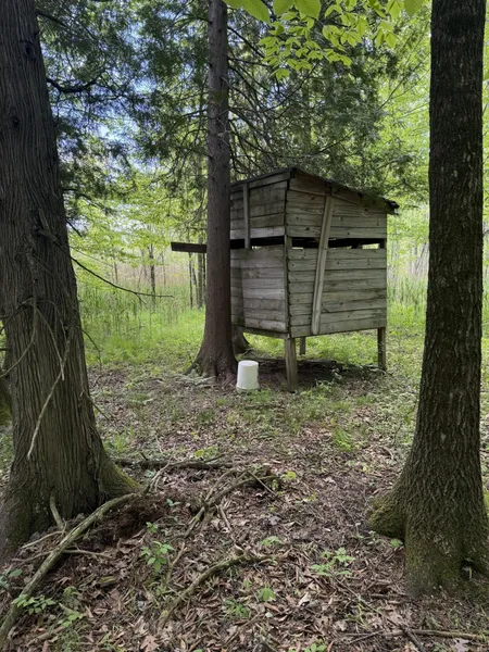Wooded 80 acres in Oceana County, There have been a lot of big bucks taken off of this property. It has a stream running through it and a pond stocked with Bluegill and Bass. Insulated pole building with power, a woodstove, and running water. It also has multiple elevated blinds. The perfect hunting camp.