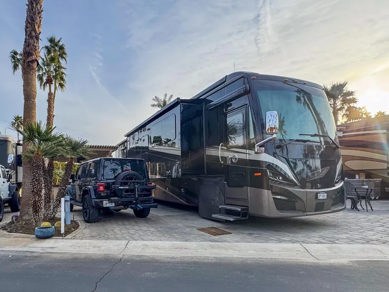 A serene pergola lot with stunning golf course views, this prime property offers the perfect blend of convenience and luxury RV living, just steps from the clubhouse, resort amenities, and the second putting green. Designed for both entertaining and relaxation, the lot features a spacious outdoor kitchen with a built-in bar, equipped with a BBQ, dishwasher, refrigerator, sink, hot water, and an InSinkErator for added convenience. Enjoy breathtaking views in both directions while unwinding in the quiet, outdoor living space, perfectly furnished with brand-new Somerset furniture featuring Sunbrella fabrics. This furnished lot includes mid-lot hookups and offers potential extra property behind the hedge and to the side. All appliances are in excellent working order, making this an effortless move-in-ready opportunity. Whether you're entertaining guests at the bar, enjoying a sunset view, or stepping onto the putting green for a quick round, this luxury lot delivers the ultimate resort experience. Outdoor Resort Indio is a Class A only RV resort in Indio, CA.