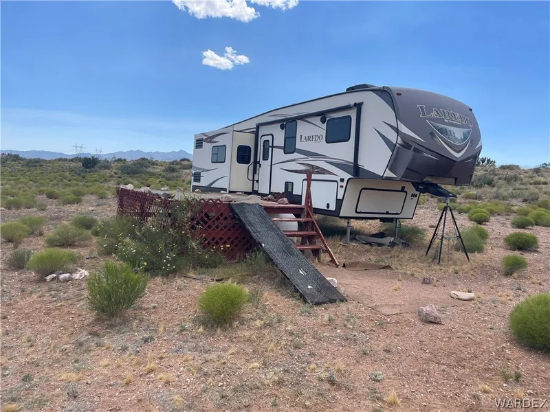 This beautiful off-grid 10.01 acres backing up to BLM! Sale includes 2014 Laredo by Keystone, 38FT Glacier package, Model 346RD, 5th wheel, 1Bd, 1Ba, sleeps 6 with King bed, double bed, & pull-out couch. Full shower! 100 Watt Solor Panel, 3500 running Watts Generator, 125 Gallon portable water tank. Satellite dish & Receiver also included. Wooden deck, pull through parking on lot. This is a great opportunity for someone seeking easy off-grid living or vacation spot or hunting place for the season.