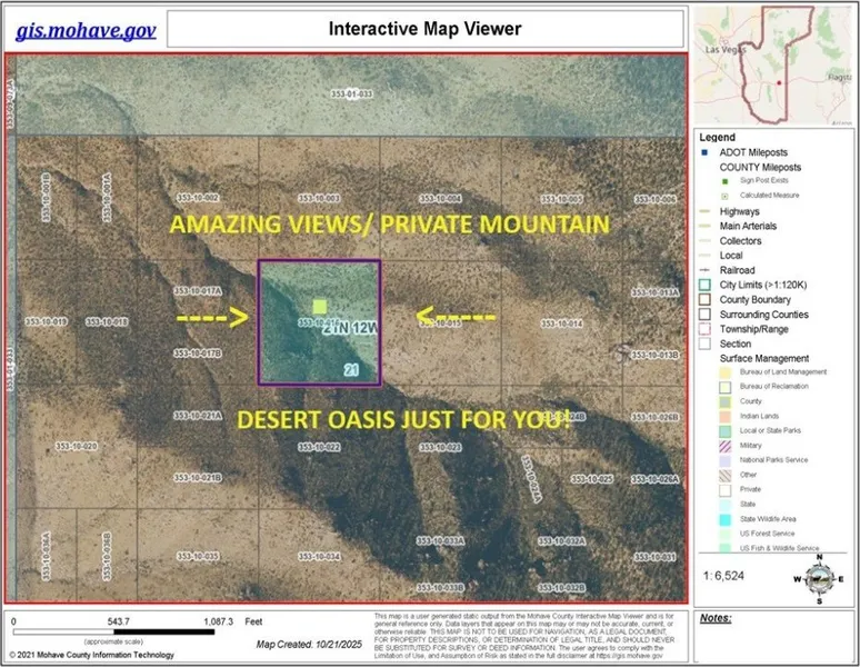 10.00 ACRES IN THE SILVER SPRINGS AREA! Kingman bound with 360 mountain top views. Discover your slice of Arizona s high desert! Escape to the peaceful surroundings of the Silver Springs Subdivision in Kingman, AZ, where wide-open skies and scenic desert views set the stage for your off-grid lifestyle. This property may be the parcel you ve been waiting to become available, utilize its off-grid location to haul your own water and set up solar here! Offering the perfect blend of privacy and freedom, it s ideal for creating your dream retreat or simply enjoying the quiet beauty of the desert. Access to this property transitions to off-grid terrain with no county-maintained roads, so keep that in mind when driving through the area. A high-clearance vehicle is recommended to navigate the off-roading conditions. Coordinates 35.19285, -113.55611 You can experience the simplicity of off-grid living surrounded by nature s raw charm and endless horizons. Kingman is only 45 minutes to Bullhead City/Laughlin area where you have all your water activities such as swimming, boating & fishing at the Colorado River! Come visit this lot today, awaiting your footsteps!