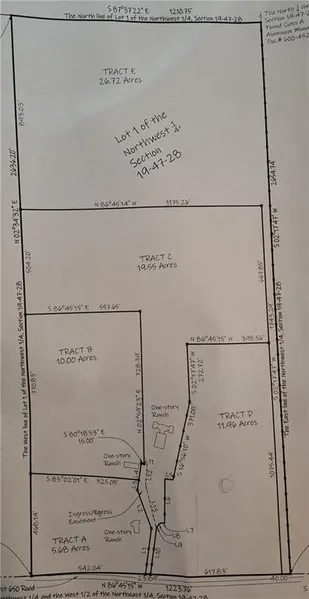 26.7 acres with timber and cleared land. Perfect for a Private Retreat or Development! On the survey map, this is Tract E of Lot 1. There is a 40 feet wide access easement from the acreage to the 650th Road. This was part of the 80 acres of Lot 1 that has now been divided to be sold separately. See MLS# 2564856 for the 53.3 acres and buildings being sold separately. Approximately half of the acreage is timber and the rest is cleared land. No utilities on the property, but electricity is on 650th Road. Come and explore the Opportunities!