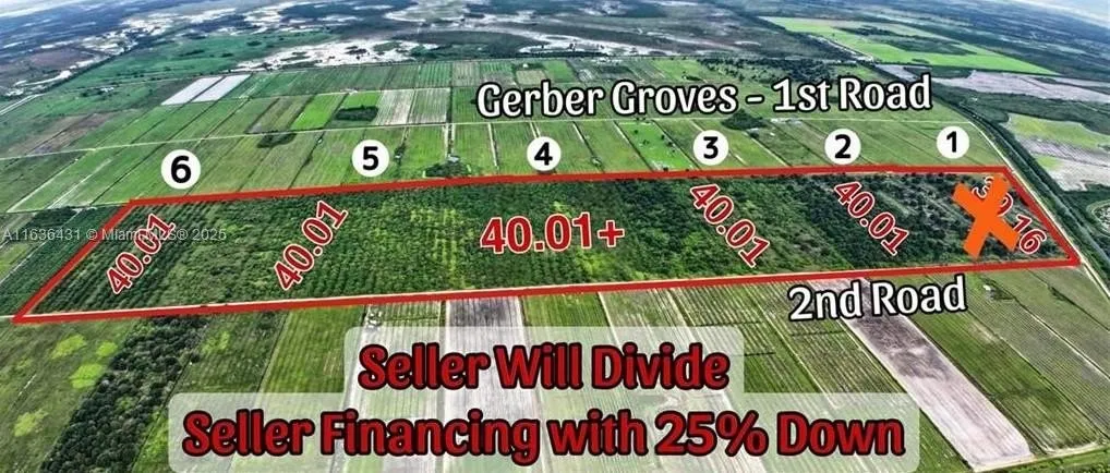 SELLER FINANCING WITH 25% DOWN AND LAND CLEARED BY SELLER ($300,000 VALUE) PRIOR TO CLOSING! This 200 acres of prime farmland is located in Hendry County. Seller will consider dividing, but prefers to sell tracts in 40 acre tracts or more. These parcels all face north with a canal running directly behind the south end. Gerber Groves Water District collects fees with property taxes and these fees go towards maintaining the farming community: roads, canals and water district pumps. Gerber Groves properties benefit from being part of the Gerber Groves Water Control Drainage District with water usage and drainage in place for all Gerber Grove land owners as part of the district’s South Florida Water Management District agricultural subdivision permit.