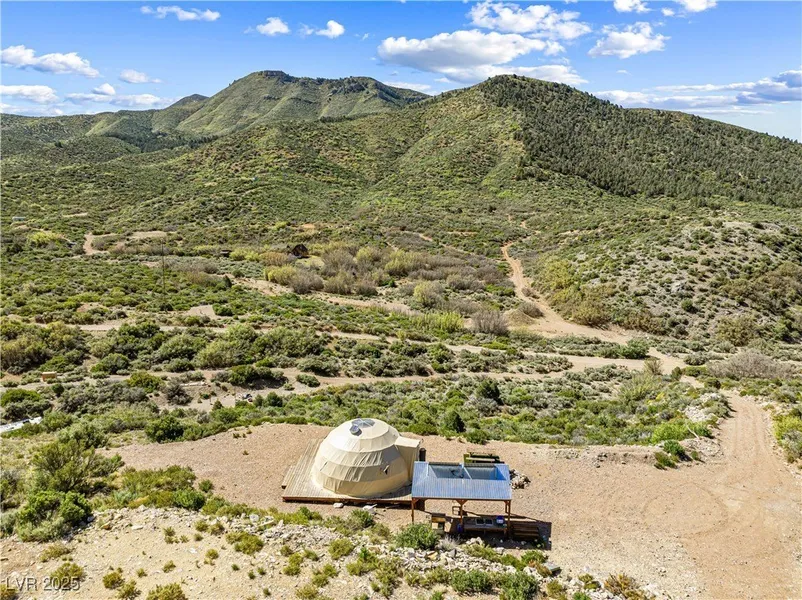 Off-Grid Tiny Home Retreat on 2 Acres in Toiyabe National Forest. Escape to this fully furnished geodesic dome tiny home on 2 private acres in scenic Coal Spring Valley, just 30 miles from Las Vegas. Set atop a 30x30 redwood deck, this solar-powered retreat features a working well, panoramic mountain views, and incredible stargazing. Includes a DC fridge/freezer, BBQ grill, outdoor kitchen, composting toilet, and $20K+ in site and access improvements. Fully off-grid with solar system and water source. Turnkey and income-producing as a short-term rental.