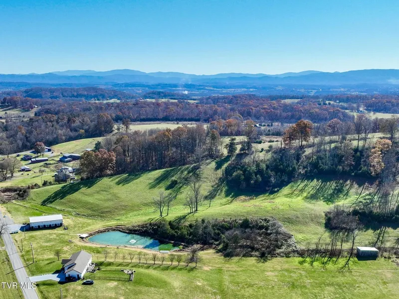 Rare opportunity to own a versatile 20+ acre East Tennessee property in beautiful Limestone. This unique property blends privacy, open land, and immediate business potential in one exceptional package. On the property sits a large finished barn positioned on its own commercially zoned one acre parcel. A rare feature that allows for home based business use, workshop space, studio use, storage for equipment or recreational vehicles, retreats, gatherings, and more. The remaining acreage offers rolling countryside, breathtaking multi-range mountain views (on the ridge top), 3-4 acres of lush wooded forest and pasture areas. The land is hayed twice a year. This is the peaceful setting buyers are searching for, while still providing convenient access to the Tri-Cities region. The land is ideal for a private estate, homestead, hobby farm, or multi-generational living. Ample parking, existing infrastructure, and significant usable space already in place, the property is ready to support lifestyle and business needs from day one. Properties offering this combination of acreage, privacy, and commercial zoning are increasingly difficult to find in East Tennessee. If you've been searching for space to live, work, and create your own vision, this property delivers. This property is absolutely breathtaking. The property boasts 3 ponds. The 3/4 acre larger pond has an aeration fountain and contains catfish, bass and painted turtles. It also has two (2) docks. The second, smaller pond is tucked into the woods and supports the various wildlife that visit it. The third is a retention pond. The 2800sqft barn offers 14ft ceilings, 14x16ft barn doors (front and back)and is built with unique circle sawn Hemlock boards. The barn was renovated in 2023 with a new metal roof, new PEX plumbing and a full kitchen remodel (cabinets, counter tops, appliances, sink, faucet). The entire barn floor was sanded and stained. The five (5) rooms (kitchen, three 1/2 baths and two office/bride & groom rooms) were freshly painted. 3 new large ceiling fans & a chandelier were installed in the main area and a new light fixture (with a fan) was installed in the bride/office space. New water heater installed in 2025. The property has an approved perc test for a 4BR, 3.5 bath home on an elevated flat area above and behind the barn. The perc test is good until May 2026. New landscaping was also added. There is an older 12 ft well on site near the retention pond. The storage shed on the backside of the property is a 20x30 wooden structure perfect for extra implements and equipment. Utilites, public water and high speed internet are on site. Site built only/ deed restrictions.