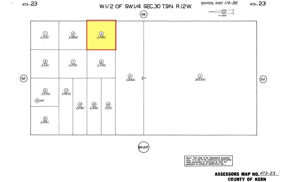 2.5+/- Ac. located on 37 Street West and South of Holiday Ave. it is 1/2 mile to the west of the 14 Fwy., in the City of Rosamond. Electric, telephone, gas, and sewer are available/nearby. Just over the Los Angeles county line. The track is in the path of future development, with newer residential tracts in the area. Buyer to assume the bond. You may Google the following GPS coordinates to locate the property: 34.839862 -118.198510