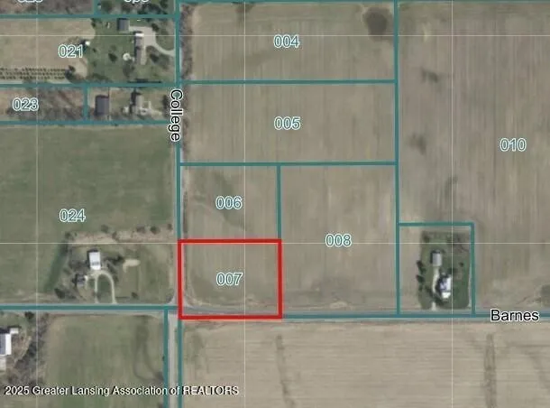 Rare 2.19-acre corner lot in Mason, MI. Perfect for your dream home! Township approved driveway access from Barnes Rd and College Rd, with potential to split into 2 lots. Don't miss this opportunity! Please call me for more details, or if you would like to schedule a showing!
