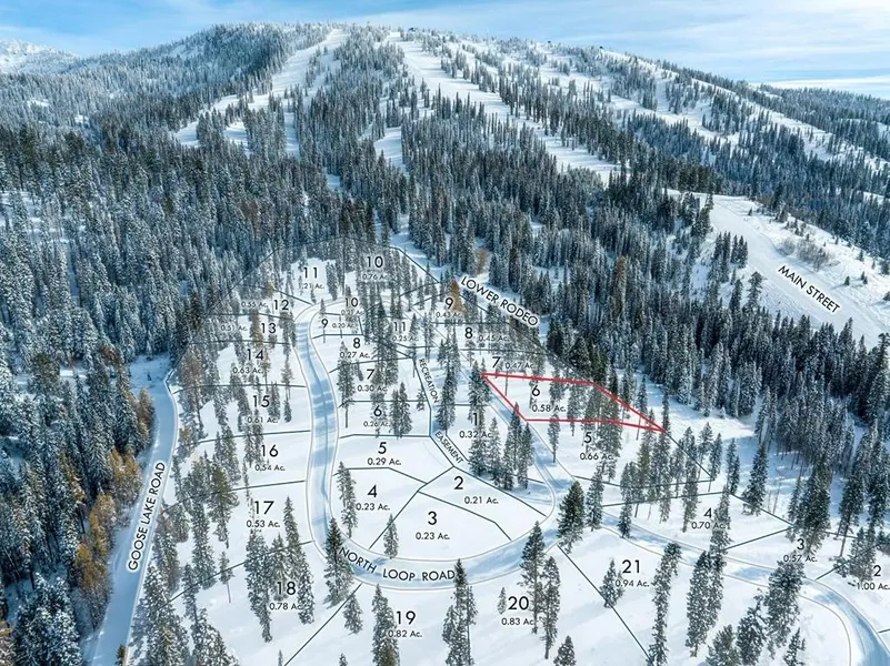 The premier ski-in/ski-out homesite at Brundage Mountain Resort, Estate Lot 6 directly borders the Lower Rodeo ski run and offers immediate access to the Blue Bird, one of the resort's high-speed quads. Positioned within the Northwoods, this 0.58-acre lot offers a rare combination of slope-side access, privacy, and thoughtful site planning. The lot's gentle, highly buildable grade and filtered views toward Council Mountain create a natural setting for a custom mountain home designed around time spent outdoors-powder mornings, long lunches on a sunny back deck just off the trail, and evenings spent watching the light fade across the trees. Its size and orientation allow for architectural flexibility and a seamless connection between home and mountain. This is a place for those who measure value not just in access, but in continuity-a home base at a mountain known for deep snow, short lift...