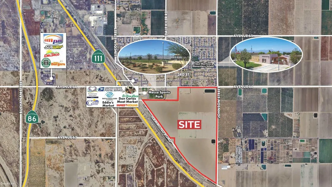 Prime farmground. Located next to Mecca Community Center. Warm area provides one of the earliest harvests in the state. Affordable Coachella Valley Water District (CVWD) irrigation water, one of the lowest water rates in California. Adjacent to new retail and medical facility, Boys & Girls Club, and new park with potential for future development. Excellent soils for a variety of vegetables, citrus, and grapes. In Opportunity Zone providing attractive tax incentives. *Brochure & Overall Flyer can be downloadable in the 'Document' tab.*