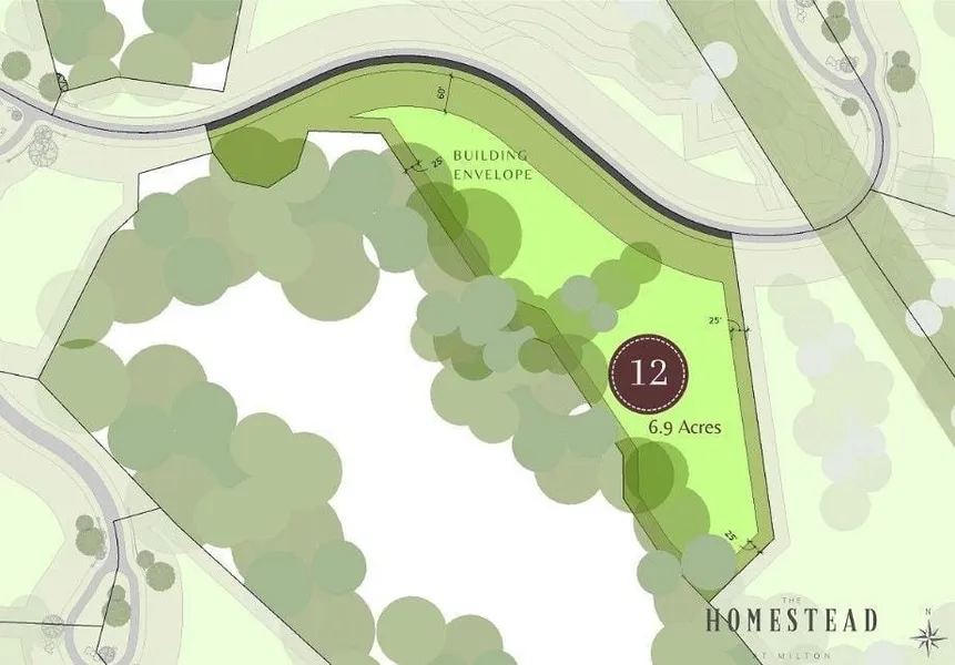 Grand 6.88 tree lined incredible estate site in the Prestigious Homestead at Milton Custom Home Community! Set in the private back section of this incredible 30 custom home estate collective, this rare estate site offers endless possibilities for your new Luxury Custom Home! Set on a former pristine golf course with maintained tree lined views and expansive building areas this site has it all. Bring your plans and builder or work with one of our many award winning teams already approved and building estate homes in the community. Build requirements within one year and within architectural guidelines for the community. Price is for lot only and required build is separate with homes currently ranging $4-$20+M. Now is the time to own your own grand estate within this special gated community. Only 6 opportunities remain! Call for availability, details and appointment.