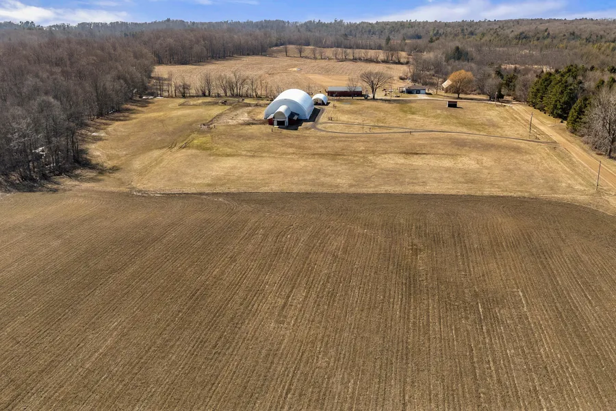 Situated only 2 miles from Lake Michigan and Meinert Park, this amazing 40-acre horse property offers many impressive features! Key amenities include a 72'x120' clear-span Winkler indoor arena with an attached 6-stall stable. Built in 2003, the expansive, brightly lit indoor arena offers year-round comfort for riding and training your horses. The adjoining stable features a spacious office, tack room, feed room, and a covered porch area. The property consists of 3 large fenced pastures, tillable acreage (currently planted with wheat), a run-in shed, and 1 automatic waterer. Two gates are equipped with electromagnetic timers to manage turnout schedules. Additionally, the property includes a 30'x60' clear-span storage building, perfect for storing hay, trailers, boats, and RVs, with a dedicated plug installed for horse trailers or RVs. With plenty of land to build, this could serve as an ideal summer retreat or year-round homestead. WANT MORE INFO? Click the Virtual Tour link which has much more detailed information, an enhanced photo gallery and interactive map! Do not go to the property without an appointment.