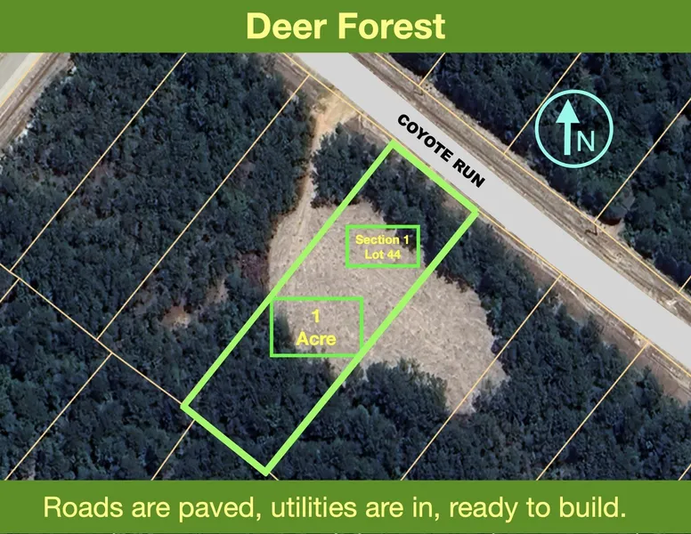 1 ACRE IN DEER FOREST > LOTS OF OPTIONS FOR HOUSE PLACEMENT > MATURE TREES > LEVEL TERRAIN > PARTIALLY CLEARED > Located on the outskirts of Willis with nearby shopping and sought after New Waverly schools. Large lot wooded community with gentle rolling hills. Peaceful privacy. You will never be crowded by neighbors. Walker County - a country lifestyle for your custom forever home. Trees, paved roads, water, most install underground propane, HIGH SPEED fiber optic internet & underground power through out. Minutes from shopping, dining, schools, hospitals, and entertainment. Low taxes - No MUD tax. High & Dry. Average elevation is 400’ above sea level.