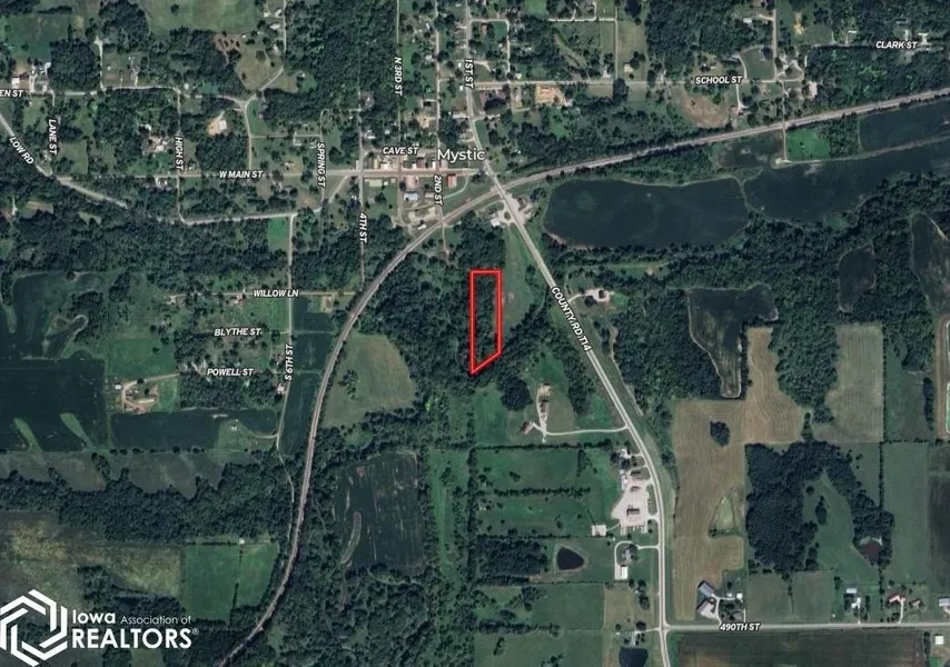 Heavily timbered 3 +/- acre lot for sale in Mystic sitting along Walnut Creek with recreational and building potential.