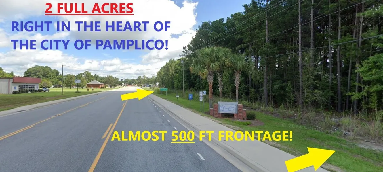 WHAT AN ENTRANCE!! **2 Full ACRES! -- Almost 500 Ft frontage on S. Pamplico HWY... Right at the Start of the center of town! - Just across the street from Pamplico Rescue and ambulance. -- A multitude of opportunities for business in a prime location with excellent visibility! -- Seller is motivated and looking for offers! - Hurry while this opportunity is still available! -- Electricity and Public water are available at street.****PLEASE NOTE! - No studies have been done - ALL the information we have been able to obtain from the sellers, and any/all third-party organizations, including but not limited to city/county and other entities, has been posted to this MLS (under "Documents"). If you do not see the item in question (Plat, Survey, Wetlands JD's, Elevation Cert, Etc., it is because we do NOT have them. -- Unless specifically noted, these items in question, will be the buyer's responsibility, either during the DD period or post-closing. Thank you. - Buyer is responsible for all utilities DD and tap fees.