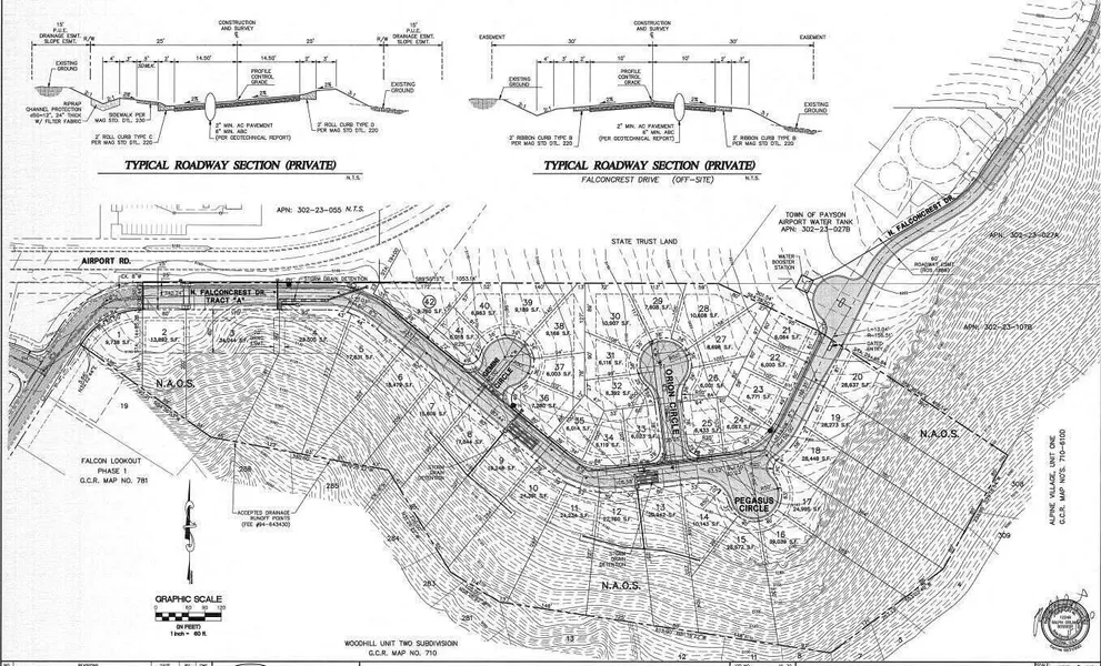 Spectacular 16.55 acres subdivision opportunity with stunning views of the Mazatzal Mountains and the Granite Dells (Stewart Mountains). This property has gone through pre-plat and is fully engineered and those plans are available for review. There are 42 total lots, with 22 smaller lots (6K-8Ksf) platted on the more level area of the site, and then 20 larger custom home lots (20K - 25Ksf) that overlook the magnificent ridgeline. This is a must see location for a developer. Please contact the agent for more detailed information to help make an informed decision for this magnificent site. This is one of the last larger private land opportunities with these incredible views that is left in Payson.