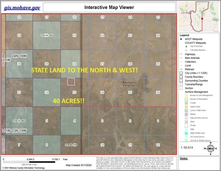 40 ACRES OF UNTAMED DESERT! This acreage is off grid and private, state land borders both the North and the West. With state land close by, it is like having an extra playground in your back yard. The parcel is untouched and is a blank canvas to make it your very own, possibly a homestead or a place to explore! The adventure begins and awaits your footsteps. The town of Peach Springs offers a bit of history and elevation is around 4700 with only being an hour from Kingman AZ. Property may lack legal access, no roads going to the property.