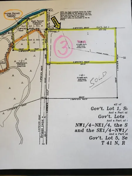 This beautiful, 5-acre wooded lot rises high above Briggs Lane for west-facing views of sunsets on North Twin! Location allows quick access to the boat-equipment storage building, lake shore and boat docks. As part of the community of Edgewater Trails, this parcel will have shared access to 377 ft. of level, sandy frontage! Access to the meandering trail system leading to its own boat slip. This exclusive new development will contain a total of 8 large home-sites (2 lake-front estate lots and 6 lots with lake privileges to 2 large, park-like access lots). Each lot is over 5 acres and located on the south shores of North Twin Lake. Road maintenance agreements/building restrictions & covenants will ensure the high quality of this picturesque community. Opportunities to own a large home-site on big water are few and far between, especially on the "Twins".