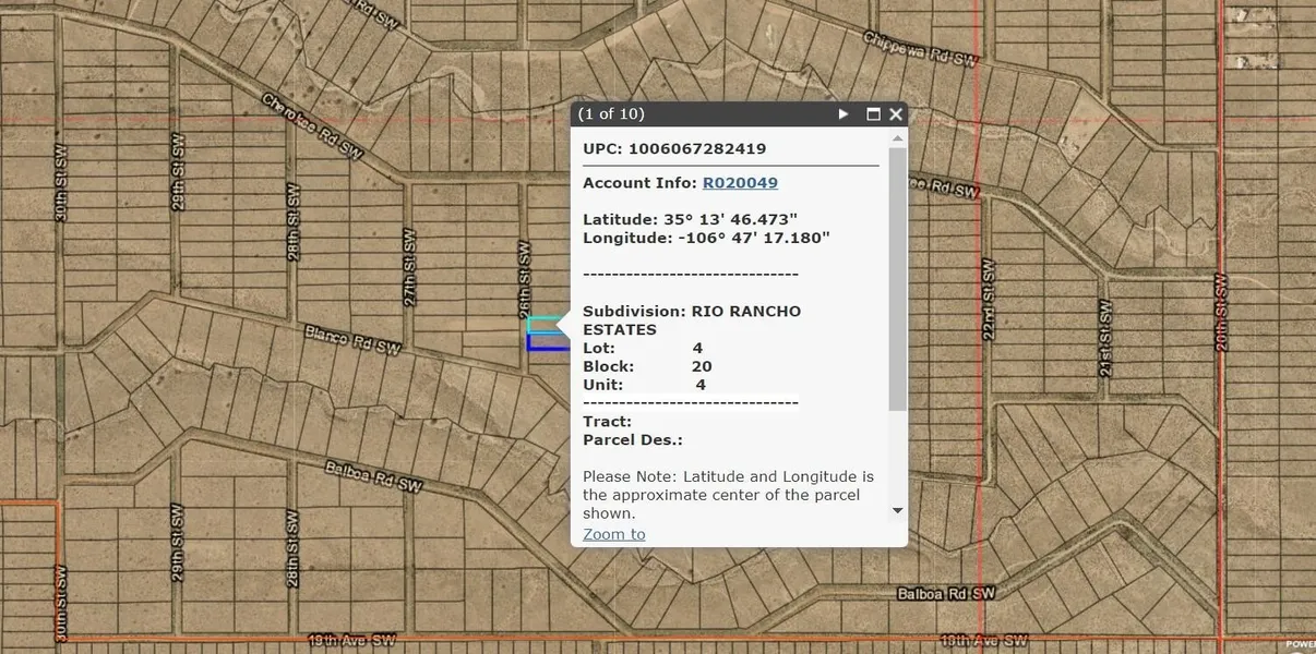 View-Get a full acre( two .5 AC deeded lots) less than 1 mile from Albuquerque. Seller is responsible to confirm any restriction's, access and availability of utilities including water. Seller prefers to close with Amber Killian at Stewart Title.