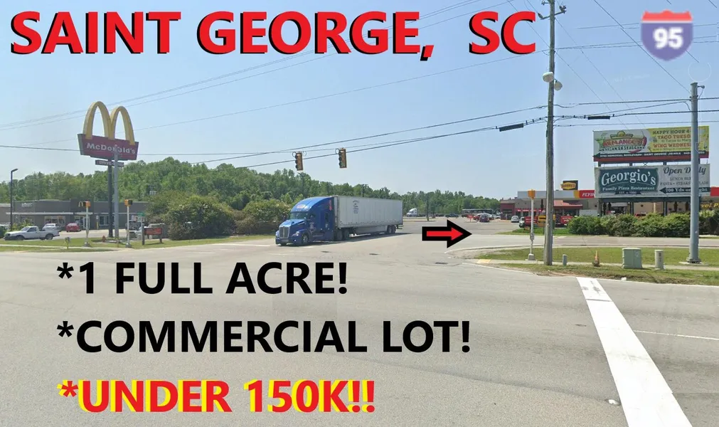 ****ATTENTION COMMERCIAL INVESTOR / OR BUSINESS OWNER!!**** 1 FULL ACRE!! **** COMMERCIAL ZONING!! -- IC (Interstate Commercial) **** Finally, a commercial location with unparalleled location & visibility, AND a price that is well BELOW MARKET!!! -- BUY NOW, and watch the price sky rocket in this up-and-coming area, of SAINT GEORGE, SC, at the intersection of *****I-95 & HWY 78!!***** - Just minutes from CHARLESTON, SC!! *** The sky is the limit here with allowable zoning, from personal and business services to general retail, office, restaurants, gas stations, auto works and lodging!! -- Utilities are located at the street, and just need to be extended to the lot!****(PLEASE SEE ''MORE...'')*******PLEASE NOTE! - No studies have been done - ALL the information we have been able to obtain from the sellers, and any/all third-party organizations, including but not limited to city...
