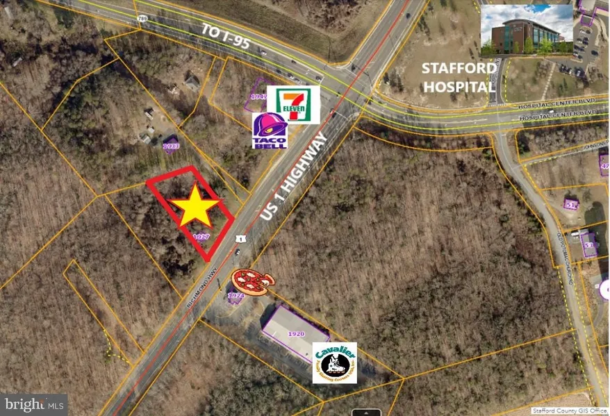LOCATION! LOCATION! LOCATION!!! Commercial lot for sale County's prime Courthouse area. Level lot zoned B-2. Convenient to Stafford Hospital & Gov't Ctr. AND LOCATED PROXIMATE TO WHERE NEW I-95 INTERCHANGE MEETS US RT 1 AND WHERE TACO BELL AND 7-11 ARE UNDER CONSTRUCTION!!! 145 FT of Rd Frontage on Route 1 Hwy. One story building on site conveys "as is, where is".