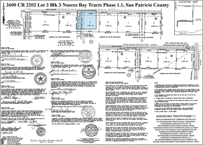 Welcome to Nueces Bay Tracts Phase I with 11 residential lots fronting County Road 2202. Each lot enjoys underground electrical access & Rincon Water District water access. Build your perfect dream home, equipment barn & outdoor entertainment with confidence in this homeowner's association neighborhood overlooking Nueces Bay, the phenomenal Harbor Bridge & the Corpus Christi skyline. Perfectly situated between 42 to 46 feet above sea level, Nueces Bay Tracts will soon become your the right place to build your home. 1.5 miles from Portland, Nueces Bay Tracts offers country comforts, while having the convenience of shopping, dining & entertaining. The price includes the land, culvert access to the property, access to water & access to electrical. Property owners will need to install their own septic system. Nueces Bay Tracts has been redesigned to be a comfortable, coastal neighborhood & p...