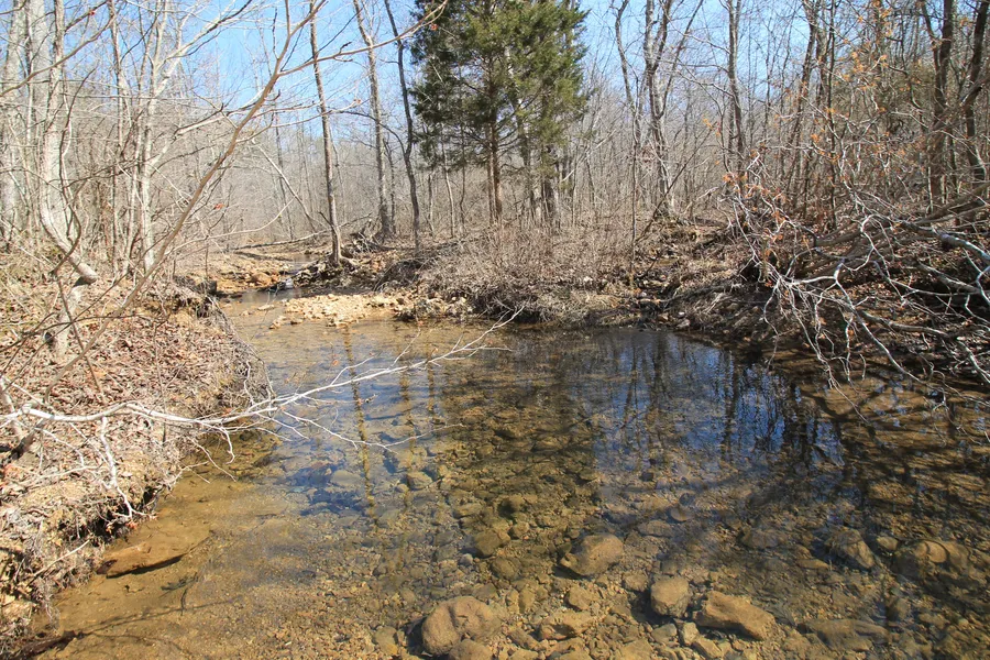 The property is mostly wooded with a series of open fields at the bottom bordering both sides of a large year-round creek. This tract also has deeded access to Twelve Mile Creek. The timber stand is made up of mostly young hardwood trees and mature pines scattered across the landscape. Mark Twain National Forest is just a short drive away, offering over 20k additional acres to recreate and explore at your leisure. There is additional acreage available adjacent to this tract. This property is unincorporated and unrestricted, so all building types and uses are permitted.