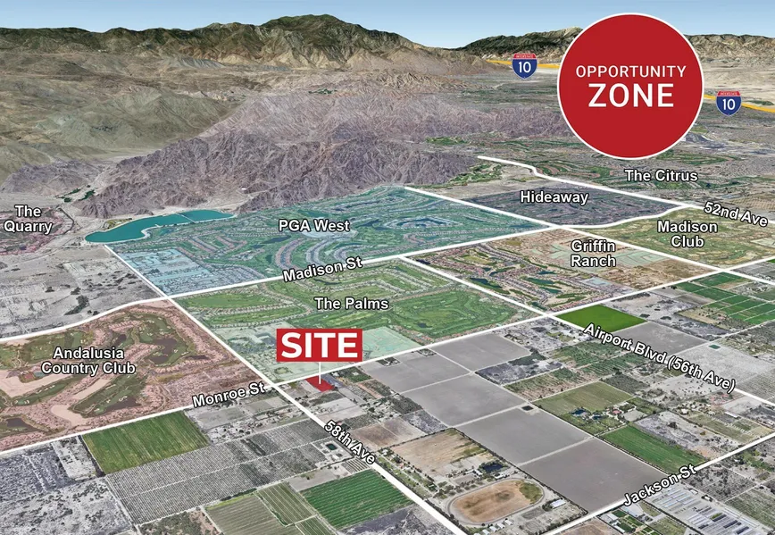 Well located with breathtaking views of the Santa Rosa Mountains. Wonderful open country atmosphere, but close to all conveniences. Across from Piazza Serena. Just three miles from the acclaimed HITS Horseshow. In an area of many equestrian estates and high-end country clubs, such as Madison Club, Andalusia Country Club, PGA West, The Palms, Hideaway, and any more!