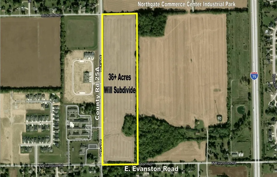 36+ Acres located in Tipp City, Ohio, in the North Dayton/Airport Market with over a half mile of road frontage with high traffic count along County Road 25A. Strategic location in North Dayton Market only one-half mile from I-75, 3 miles north of the Dayton International Airport (major Distribution HUB), and 6 miles north of I-70. Zoned for Office Services and Business Use including. Will subdivide lots from 5 acres and up. Public water and sanitary sewer available. Located next to the Northgate Commerce Center Industrial Park and perfect location for hospital, medical/dental offices & clinics, professional offices, laboratory, personal care facility, commercial multi-tenant complex, daycare center, church and religious facilities, and more. Flat topography, construction ready, and perfect for your single-use or multi-use needs. Call today for full details.