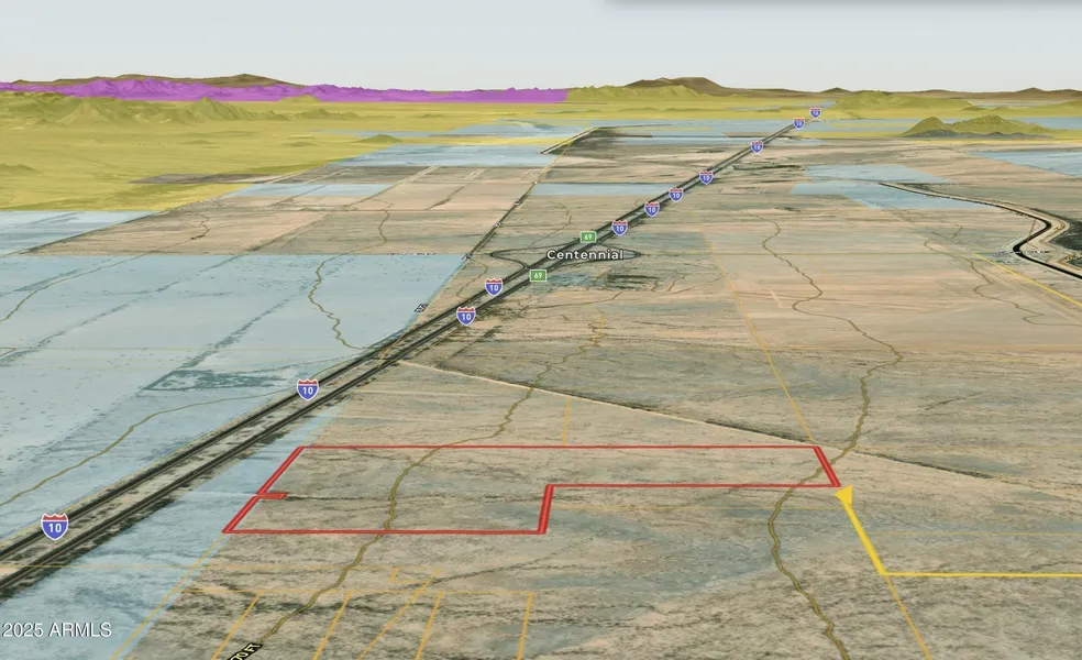 Positioned at the strategic intersection of I-10 and Avenue 75E in Centennial Flats, this expansive 60-acre parcel offers exceptional highway frontage and unmatched access-critical for large-scale land banking or master-planned development. The predominantly flat terrain provides an ideal blank slate to envision residential, commercial, or mixed-use projects aligned with regional growth. Currently zoned agricultural, the property presents a unique opportunity to engage early in the land entitlements process and shape future use, leveraging its direct adjacency to a major transportation corridor. With utilities limited today, savvy developers can capitalize on this blank canvas to design infrastructure from the ground up while benefiting from competitive pricing in a rapidly developing market. Whether your strategy is long-term land banking or initiating phased development, this tract's l...