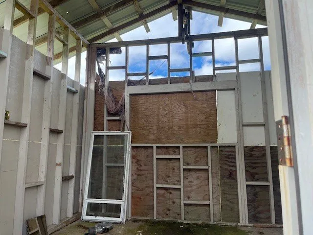 Property had about 2.5 acres ripped and rolled and is now overgrown. A cabin or storage shed approximately 12 x 12 sits near the back of the property . There is a short driveway with a gate. Many fruit trees ; tangerine, avocado T,ice cream beans, green tea, bananas and more. The cabin is an allowable structure.