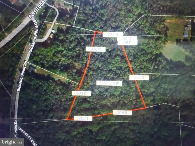 Great opportunity for someone. Beautiful Lot! SOLD AS IS. Mostly level. Possibly subdividable. Ingress and egress for previous dwelling was from Blossom Point Rd. (beside the telephone pole). Ingress and egress was never recorded. Close to the Port Tobacco River. Country living at its Best! Raw Land. Sold "As Is". "Ingress and Egress" specifics need to be researched / verified by the buyer. Previously accessed from Blossom Point Rd.... starting at pole and fence , between Ms. Thomas and Mr. Leaply's property (click satellite map). It traveled at an angle, back to previous dwelling/mobile home (not livable). The property is believed to have a perc, but this needs to be verified at the health department. BUYER & BUYER'S AGENT ARE ACCOUNTABLE FOR PERFORMING THEIR OWN DUE DILIGENCE BY VERIFYING ALL FACTS, FIGURES, MEASUREMENTS, SCHOOLS, SQUARE FOOTAGE, HOA RELATED FEES, TAXES, PLUS ANY & ALL MATERIAL FACTS IMPORTANT TO BUYER .