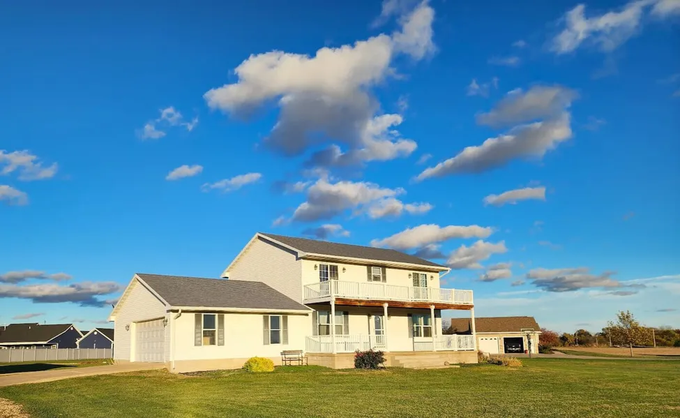 9045 Deer Meadow Dr. Rushville, IL. Large 6 bedroom with 3 1/2 bath home is located in the Deer Meadow Estates Subdivision just minutes outside of Rushville. This home is located on 1.59 acres with a detached 2 1/2 car garage. The home features an attached, heated, 2 car garage. On the main floor a mudroom/laundry room with storage closet. Eat in kitchen (appliances convey) with newer (1.5 years) Samsung Appliances: Gas Stove, Dishwasher, Microwave and Fridge. Dinning area has a patio door that leading to a large back deck. Living room, 2 bedrooms, and 1/2 bath. Second floor has 2 bedroom, full bathroom and Primary bedroom with 9'x6' walk in closet. The primary also features an en suite bathroom with jet tub and separate shower. The basement has a large open area ready to be finished. It would make a great 2nd living room, movie room or game room. The basement has 1 bedroom, storage room...
