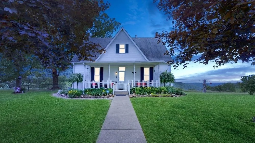 Large properties have been rare in Indiana in recent years, so this +/-335 acres in Ohio County is a unique opportunity! A quick list of key features includes +/- 82 acres of prime tillable ground, a 4-bedroom home built in 1886 with modern updates, fiber optic internet, municipal water, generator, security/camera system, original wood plank floors throughout, nearly 2 miles of road frontage, 100 x 65 pole barn, 60 x 40 garage/workshop, and a half mile of frontage on locally beloved Laughery Creek. With over 13,000 sq. ft. under roof, there is more than enough room for hobbies, possible event space development, and businesses/operations of all sizes. Currently, there are over 120 acres of mature timberland, additional hay fields, extensive pastures for recreational use, horses, cattle, and even a winery. The home is perfectly positioned to look over the beautiful surrounding hills with dramatic views and sunsets. Inside the solid, well-kept Indiana farmhouse are high ceilings, strong bones, and historic character. Two bedrooms are on the main floor, and one is currently used as an office. The huge eat-in kitchen is the heart of the house with maple cabinetry and newer appliances. In the rear, native cedar paneling lines the large pantry/mud room and storage area. The upstairs has 2 spacious bedrooms with closets and extensive attic storage. The bedrooms are split by a cozy shared library and reading loft. The garage/workshop has 2 double garage doors, concrete floors, an alarm system, and a divided wall for added security in the workshop. The biggest barn is a massive 100 x 65 open pole barn for storing large equipment, vehicles, RV’s/campers, or offering endless conversion possibilities for businesses or development. The other barns vary in age but are in amazing condition with newer metal roofs. The large black tobacco barn is 38 x 52 with heavy timber construction, while the smaller barn is 21 x 24. This is truly an exceptional farm that should not be missed.